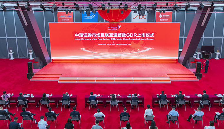7月28日,深圳证券交易所(以下简称深交所)和瑞士交易所通过视频连线方式举行中瑞证券市场互联互通首批GDR上市仪式,格林美股份有限公司(以下简称格林美)、国轩高科股份有限公司(以下简称国轩高科)全球存托凭证(GDR)在瑞士交易所成功上市交易,中国驻瑞士大使王世廷、深圳市金融局局长何杰,瑞士SIX集团执行董事会成员兼全球交易所负责人托马斯·西伊伯、深交所副总经理唐瑞、中国结算深圳分公司副总经理卢世雄,以及深市发行人、中介机构等相关负责人分别在深瑞两地出席仪式并致辞。“深瑞通”正式启动,是深交所贯彻落实党中央、国务院关于扩大金融开放战略部署、推动深化中欧资本市场互利合作的重要举措,也是促进中瑞市场制度互认、支持企业依法合规利用两个市场两种资源做优做强的有益实践,具有重要的里程碑意义。